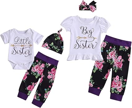 Matching outfits on amazon. Toddler baby girls sister matching outfits baby little sister romper big sister tops floral skirt pants clothes set 1399 13. Bilison baby boy girl brother and sister matching outfits pink dress top vest and floral short pants 2pcs summer clothes set. 38 out of 5 stars 38.