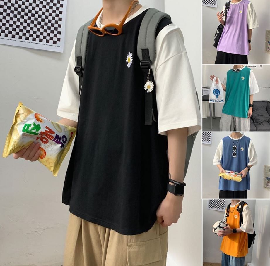 Daisy Loose Korean Style T Shirt Couple Wear Little Daisy Embroidery Mens Fake Two Piece Color Matching Casual Short Sleeved Top Shirt And Tshirt Create Your Own T Shirt Design From Lovelyting