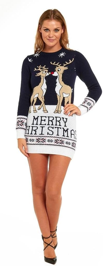 Ladies Christmas Sweater Dress Womens Tunic Xmas Fairisle Top By Ylut Deer Couple X Large At Amazon Women S Clothing Store