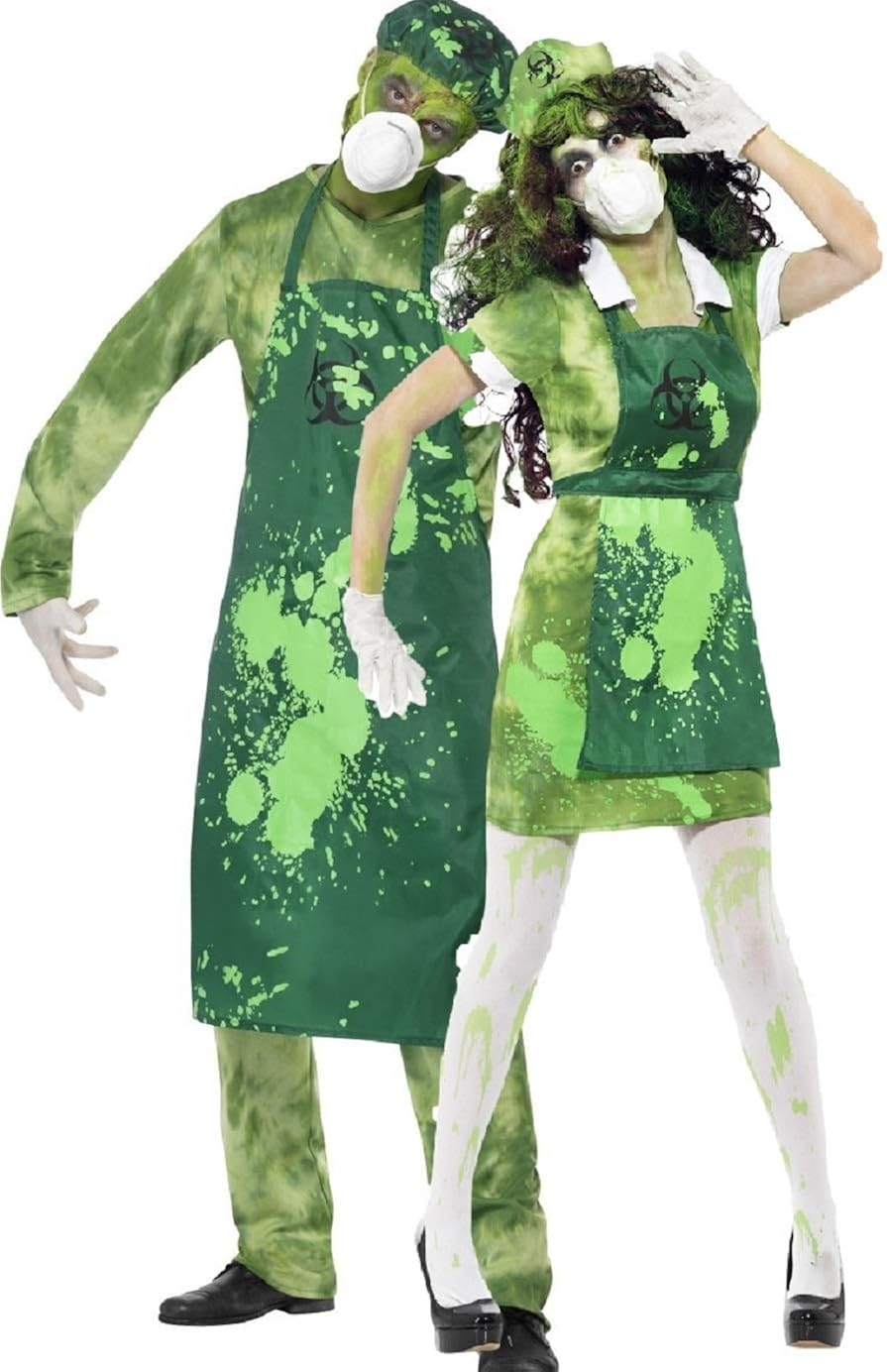 Amazon Com Fancy Me Couples Mens Ladies Zombie Bio Hazard Toxic Waste Halloween Costumes Outfits Ladies Uk 16 18 Mens Medium Clothing