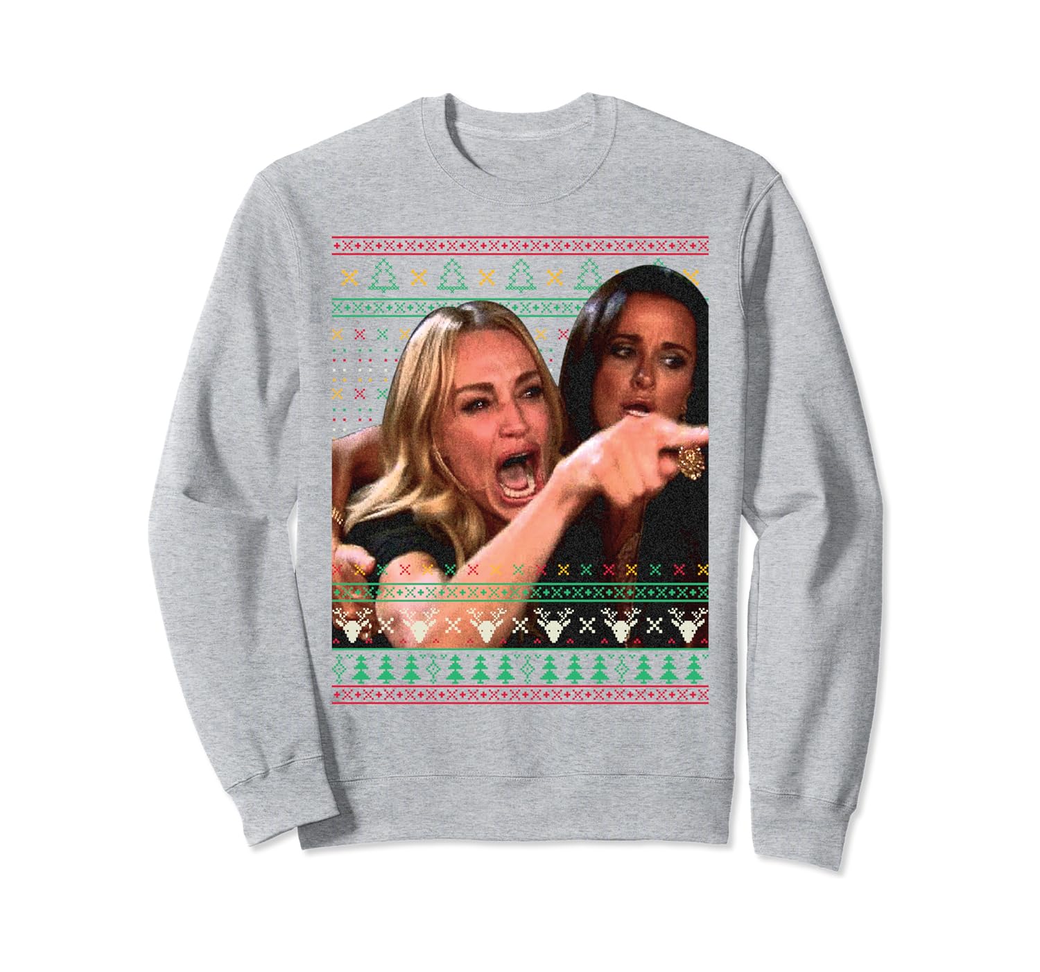 Amazon Com Woman Yelling At A Cat Ugly Christmas Sweater Funny Couple Sweatshirt Clothing