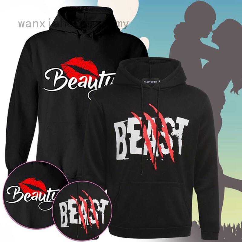 Wanxiahongmao Women Men Fashion Couple Hoodies Printed Beauty Beast Hoodies Casual Solid Color Sweatershirt Hoodies Top Shopee Malaysia