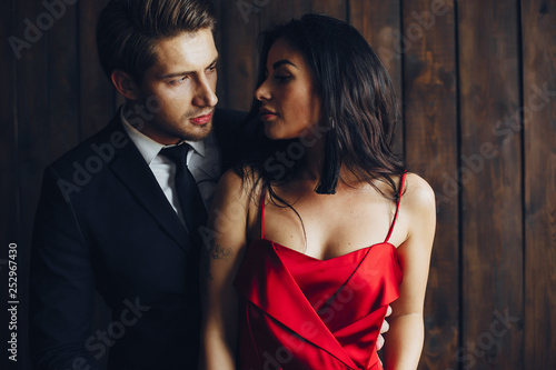 Elegant Man In A Black Suit Couple At Home Hot Woman In A Red Dress Buy This Stock Photo And Explore Similar Images At Adobe Stock Adobe Stock