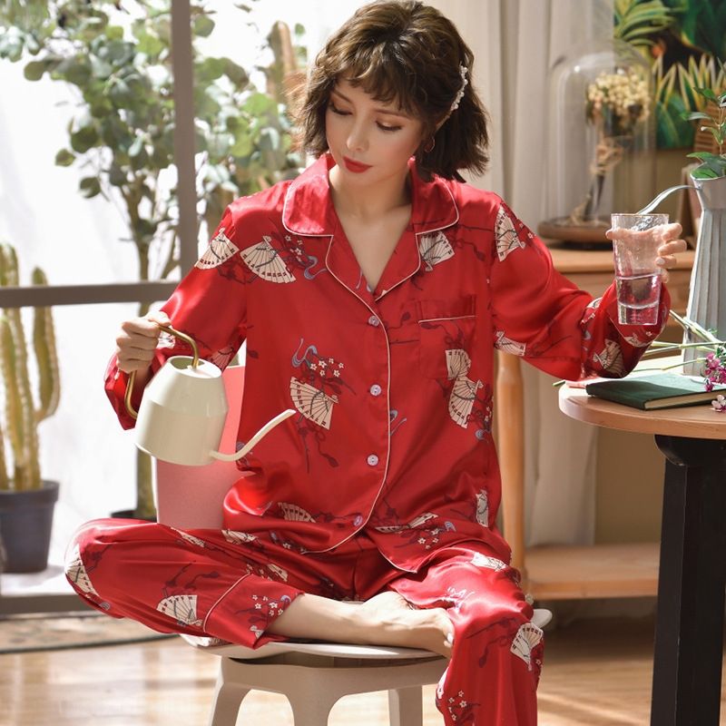 Couple Dress Pajamas Silk Wedding Wedding Suit Red Ice Silk Pajamas Womens Silk Like Long Sleeve Mens Two Piece Suit Autumn Boy Christmas Pajamas Pjs For Girls From Hungrydhgate 24 33 Dhgate Com