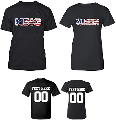 Amazon Com King Queen American Flag Pattern Customized Text Name Design Couple T Shirt Size Men Xxl Women Xxl Clothing