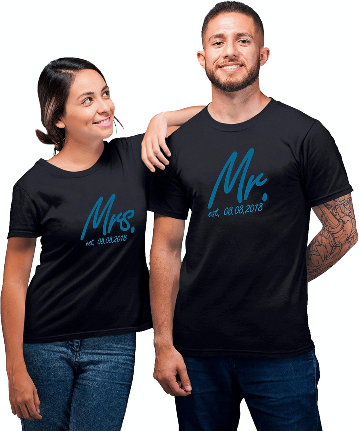 Amazon Com Mr And Mrs Date Print Design Matching Couple Men Women T Shirt Clothing