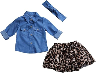 Amazon Com Family Mother And Daughter Matching Clothes Set Long Sleeve Denim Jeans Shirt Top Leopard Skirt Outfit Clothing