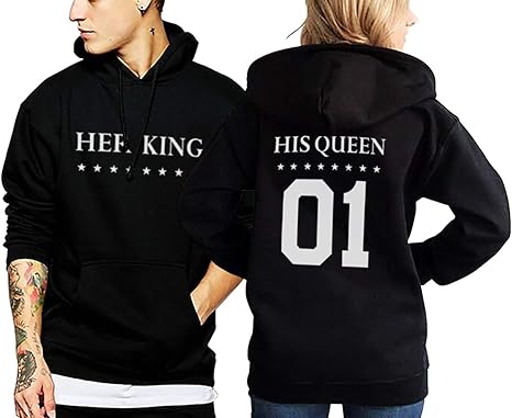 Amazon Com Couple Hoodies King Queen Matching Sweater For Couples Pullover Balck Gift 2 Pcs Clothing